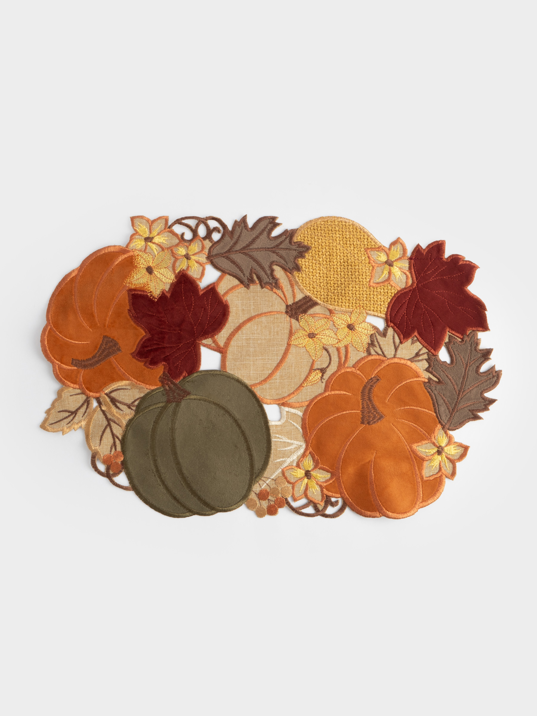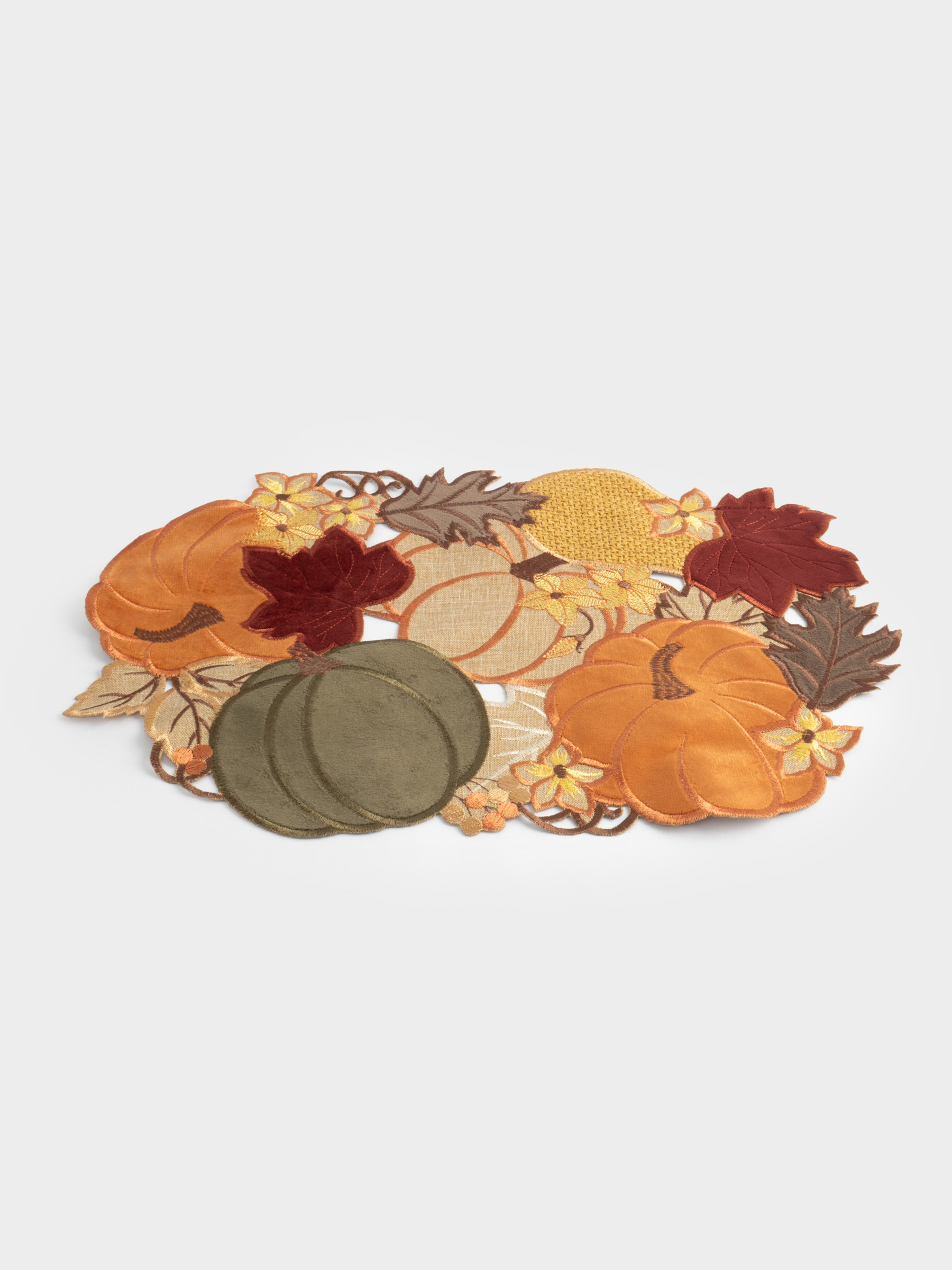 Салфетка под приборы, 30х45 см, полиэстер, овальная, бежевая, Тыквы в листьях, Bright pumpkin