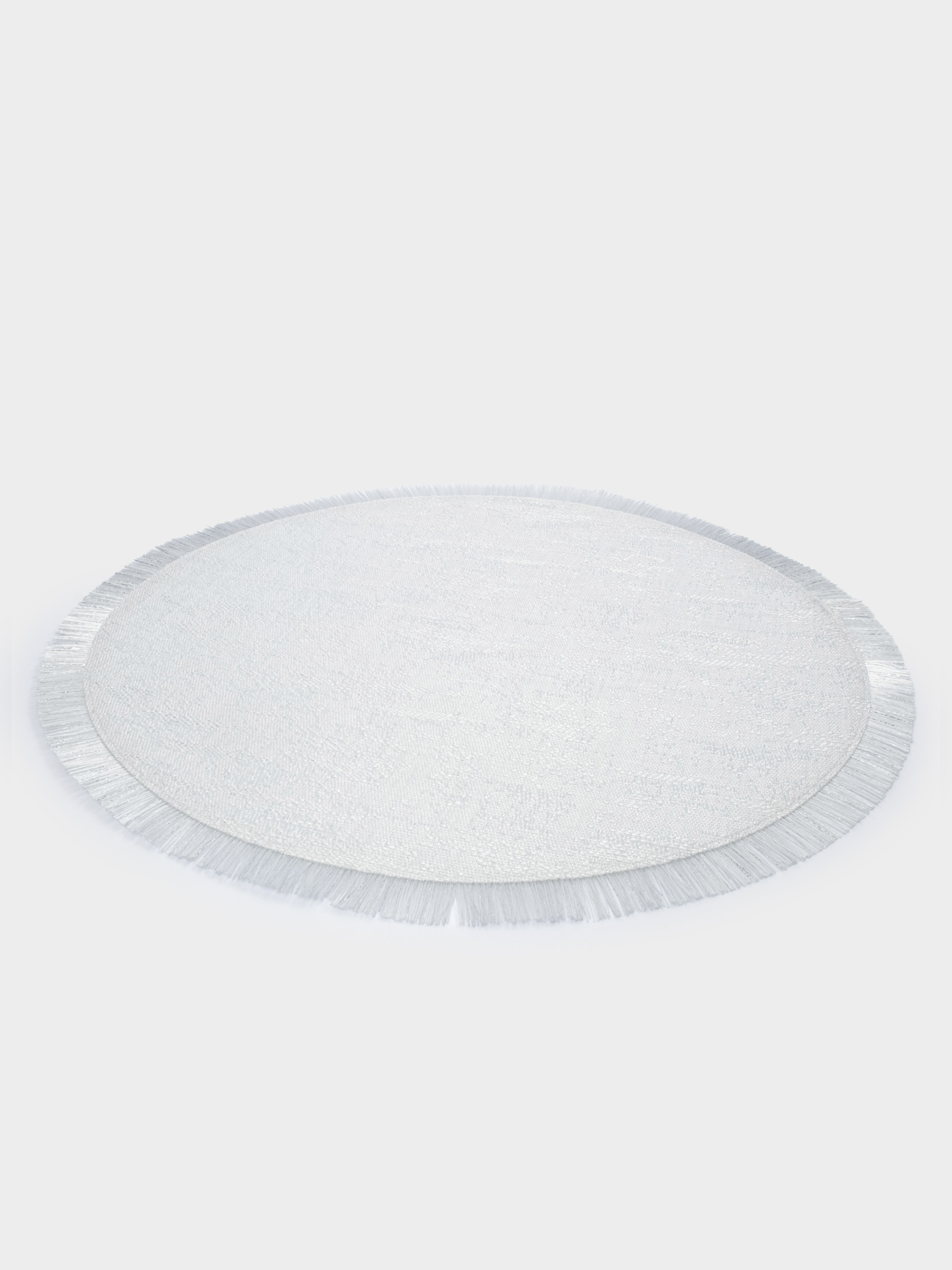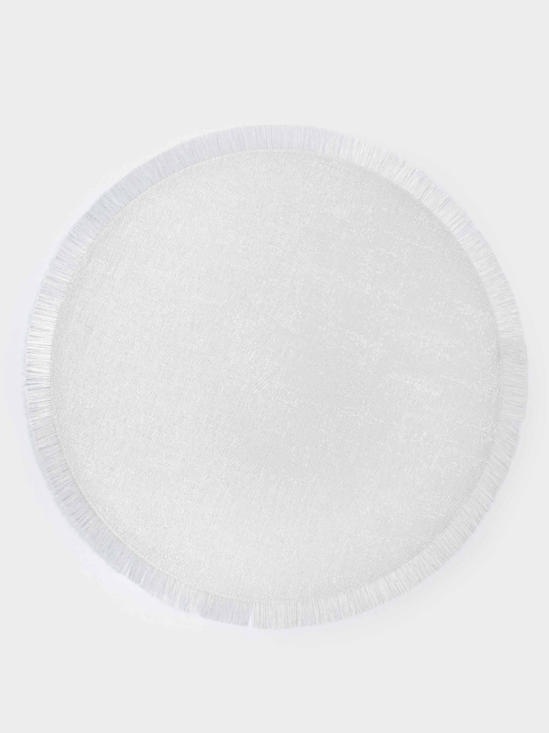 Салфетка под приборы, 38 см, ПВХ/полиэстер, круглая, серебристая, Бахрома