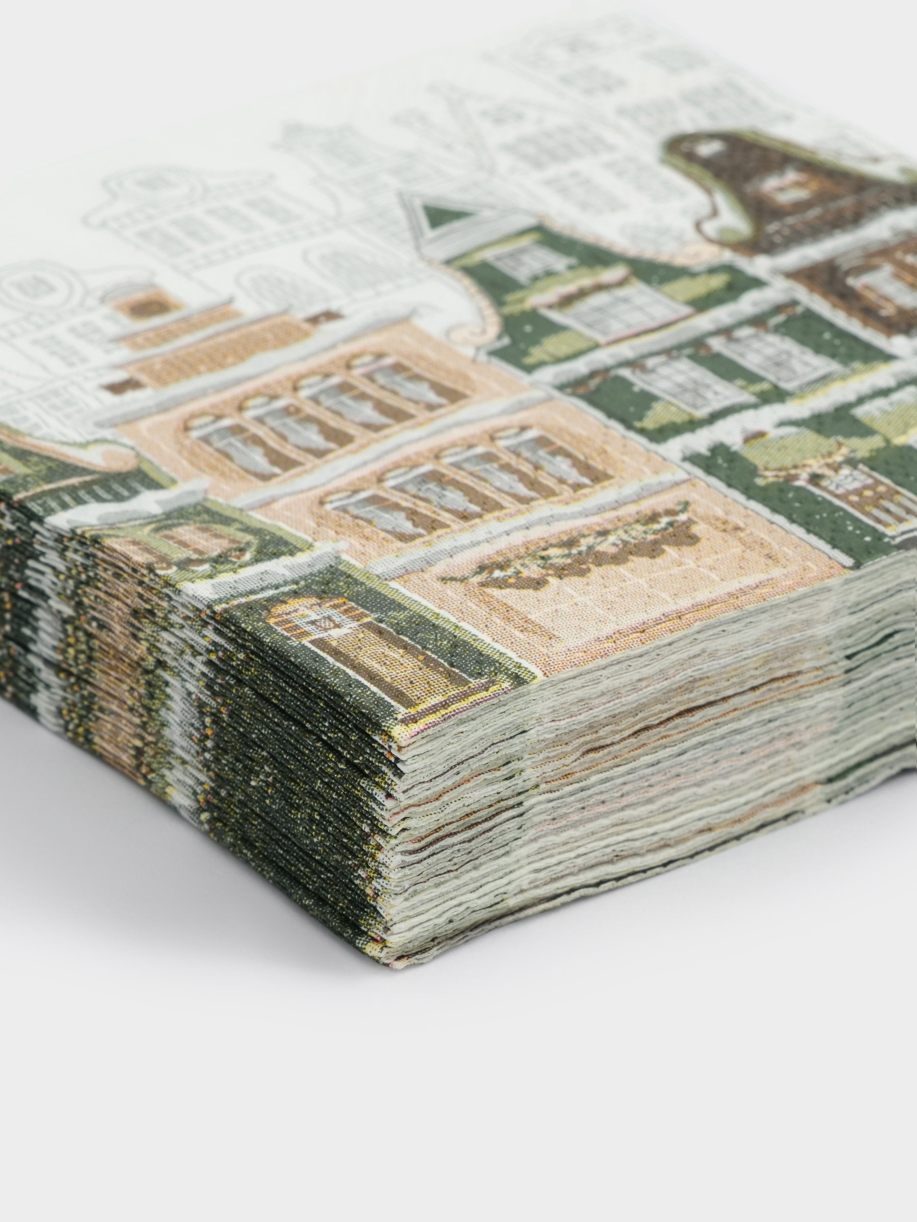 Салфетки бумажные, 21х21 см, 20 шт, квадратные, белые, Дома, Town