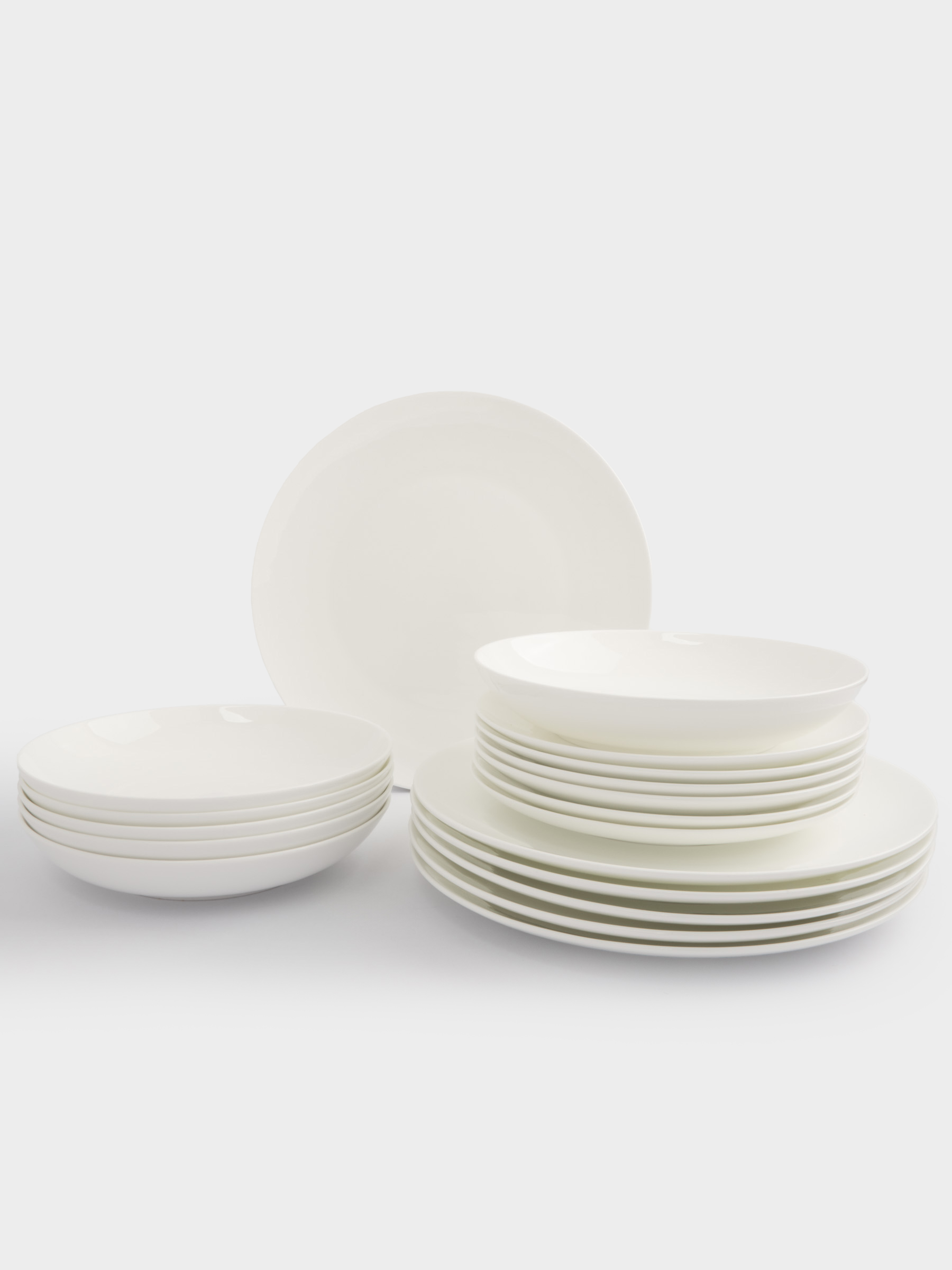 Сервиз обеденный, 6 персон, 18 предметов. Комплектация и размеры: тарелка обеденная, 27 см - 6 шт, тарелка закусочная, 20,5 см - 6 шт, тарелка суповая, 20,5х4 см - 6 шт. Материал: фарфор Fine Bone China. Подходит для использования в микроволновой печи. Рекомендуется мыть вручную с применением мягких моющих средств. Не использовать для ухода абразивные чистящие средства и жесткие губки. Можно мыть в посудомоечной машине.