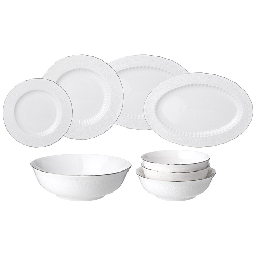 ТМ LEFARD коллекция "BOUQUET" с ботаническим рельефным рисунком, цветочным декором и изящной платиновой полосой. Так и хочется пробежаться по роскошному лугу, упасть в траву и замереть, слиться с этим миром и услышать стрёкот кузнечиков, гул шмелей, шелест лёгких крыльев стрекоз и бабочек. Упрочненный высококачественный тонкий фарфор. Современные эксклюзивные формы, украшенные рельефными линиями и уникальным декором, удобные размеры. Обеденные и закусочные тарелки, суповая тарелка - салатник, овальные блюда и салатники различного назначения - все это делает сервировку ежедневного и праздничного стола изящной и неповторимой. Декорированный рельефный фарфор прекрасно сочетается с белой рельефной частью коллекции. Это прекрасный подарок. Посуда прошла сертификацию. Безопасна для контакта с пищевыми продуктами. Мыть с применением мягких моющих средств. Нельзя использовать в микроволновой печи, не рекомендуется мыть в посудомоечной машине. Комплектность: обеденная тарелка 25,8*2,5 см 6 шт., закусочная тарелка 20,5*1,5 см 6 шт., суповая тарелка - салатник 17,5*5,5 см 750 мл 6 шт., блюдо овальное 32*22,5*2,5 см 2 шт., салатник 22,5*7 см 1650 мл, салатник 15*6 см 630 мл 2 шт.