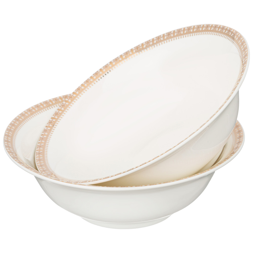 ТМ LEFARD эксклюзивная коллекция «CROWN» из качественного тонкого фарфора. Изысканно-утонченная классика на все времена. Стильный декор, прямые современные формы, удобные объемы, подарочная упаковка. Прекрасный подарок по любому поводу, никого не оставит равнодушным. Посуда прошла сертификацию. Безопасна для контакта с пищевыми продуктами. Нельзя мыть в посудомоечной машине, использовать в микроволновой печи. Комплектность: тарелка обеденная 25,5 см 6 шт., тарелка закусочная 20,5 см 6 шт, тарелка-салатник суповая 18*5 см 700 мл 6 шт, блюдо овальное 32*22 см 2 шт., салатник 23*7 см 1400 мл 1 шт., салатник 15,5*5 см 400 мл 2 шт.