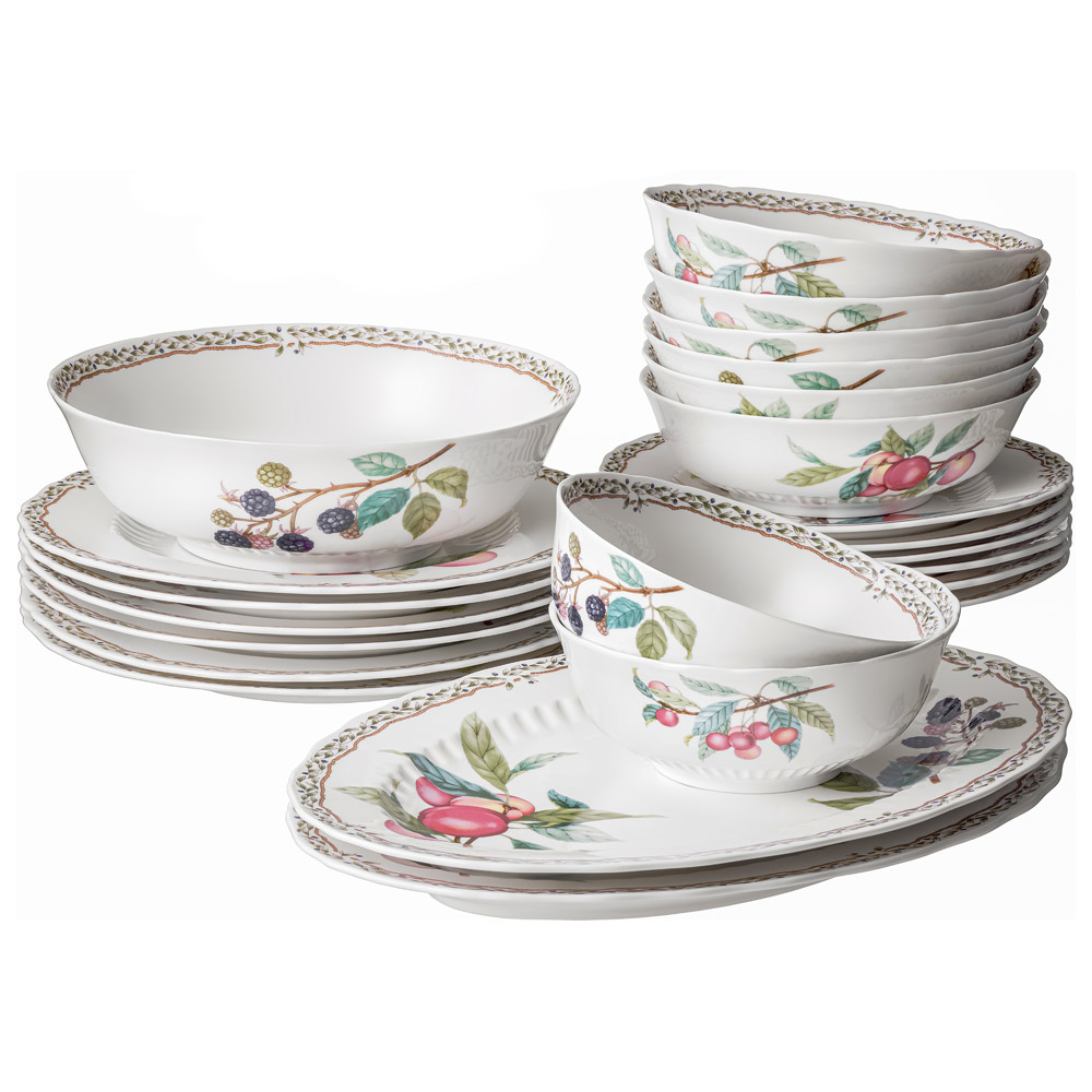 Комплектация: тарелка закусочная 20,5 см - 6 шт., тарелка обеденная 25,5 см - 6 шт., тарелка суповая - салатник - 6 шт., блюдо овальное 32,5 см - 2 шт., салатник 22,5 см - 1 шт., салатник - 2 шт.