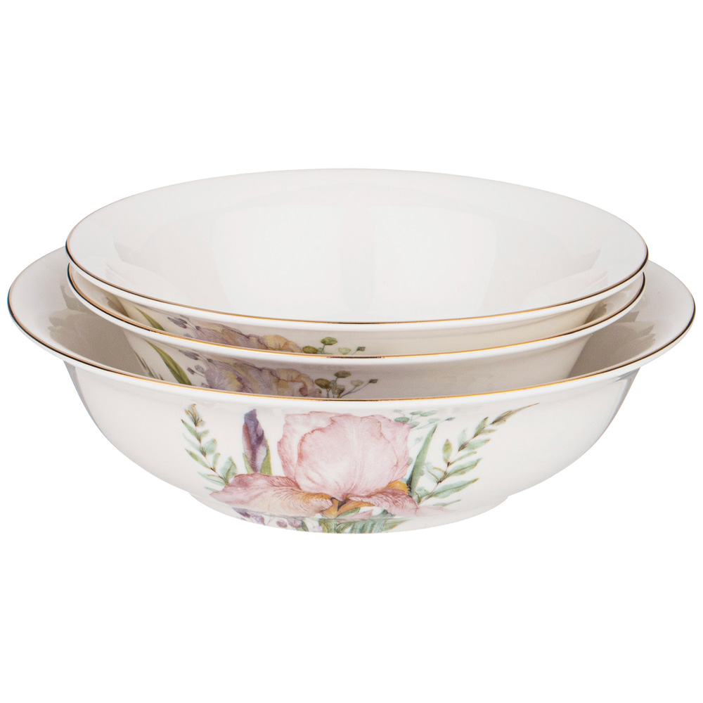 TM Lefard коллекция "Ирис" - это эксклюзивная коллекция нежных ирисов на модных формах с золотой окантовкой. Первый цветок ириса появился где-то в юго-восточной Азии в древние времена. Ирис был так красив, что им любовались и звери, и птицы, и воды, и ветры. Они разнесли семена этого необычного цветка по всему миру. И теперь благодаря им мы любуемся разнообразием этих красивых цветов. Качественный тонкостенный фарфор, "живые" натуральные цвета декора, красочная упаковка делают предметы коллекции прекрасным подарком к любому случаю. Продукция сертифицирована. Безопасна для контакта с пищевыми продуктами. Нельзя ставить в микроволновую печь, не рекомендуется мыть в посудомоечной машине. Комплектность: тарелка обеденная 25,5 см 6 шт., тарелка закусочная 20,5 см 6 шт, тарелка-салатник суповая 18*5 см 700 мл 6 шт, блюдо овальное 32*22 см 2 шт., салатник 23*7 см 1400 мл 1 шт., салатник 15,5*5 см 400 мл 2 шт.