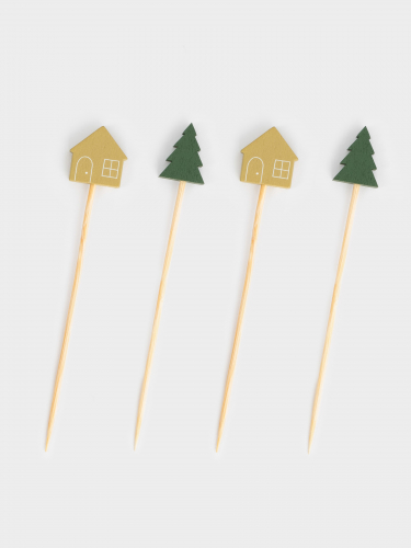 Шпажка для канапе, 9 см, 20 шт, бамбук, серебристая/золотистая, Олень, New year