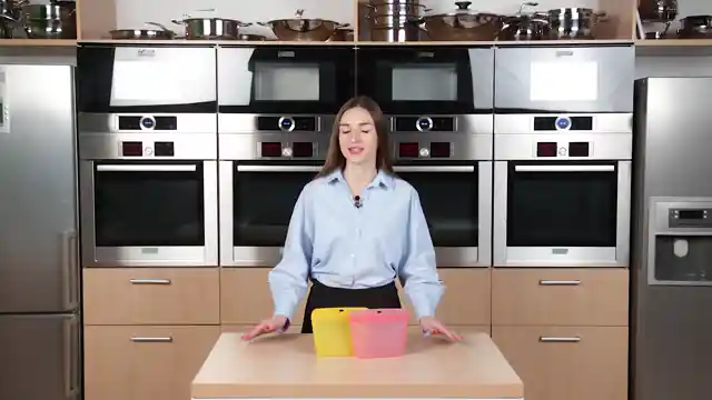 Широкое дно обеспечивает устойчивость контейнера на полках и рабочей поверхности и позволяет легко его наполнять.