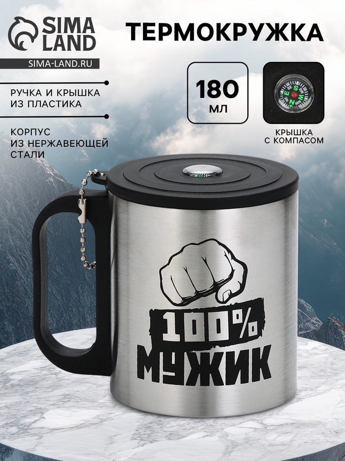 Термокружка «100 % Мужик», 180 мл, с компасом