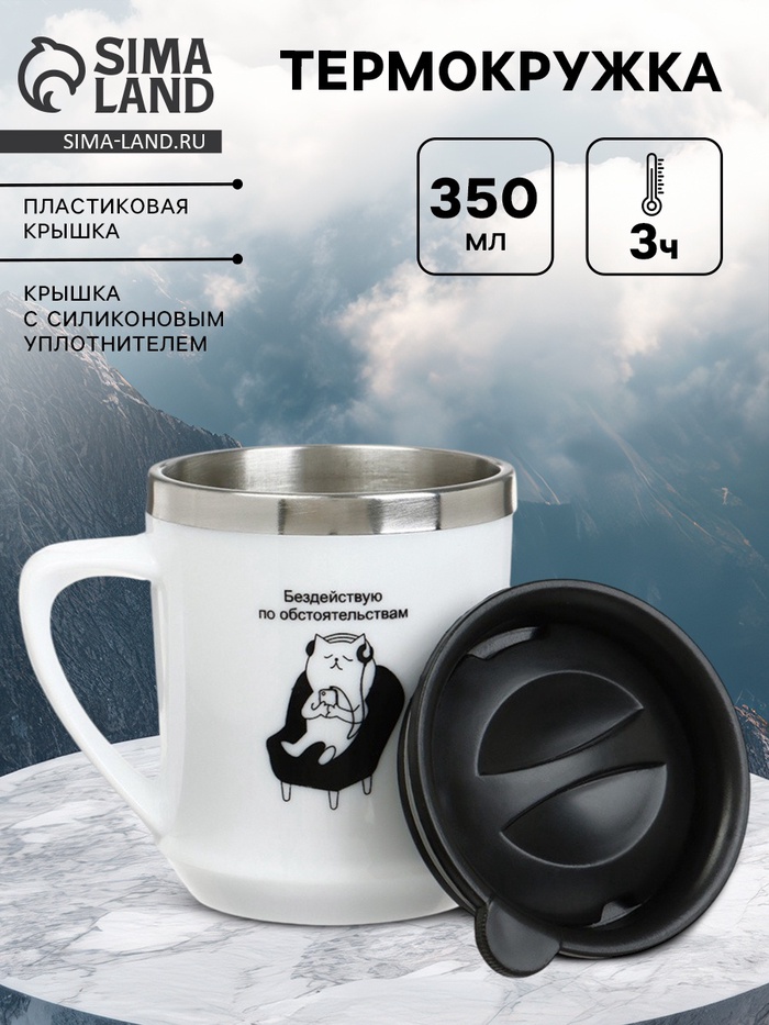 Термокружка, 350 мл, «Бездействую», сохраняет тепло 3 ч, белая