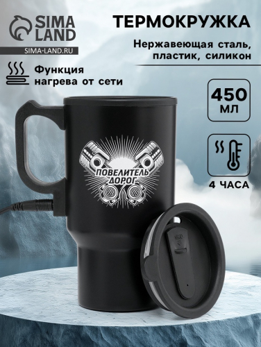 Термокружка для кофе и чая "Мастер К" идеальна для офиса, автомобиля, длительных прогулок и детям в школу. Благодаря специальному покрытию надежно лежит в руке.