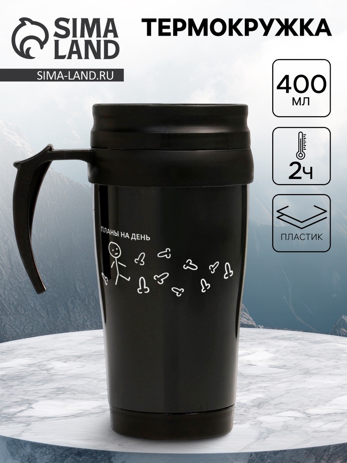 * Термокружка выполнена из пластика и силикона, поэтому устойчива к механическим повреждениям.