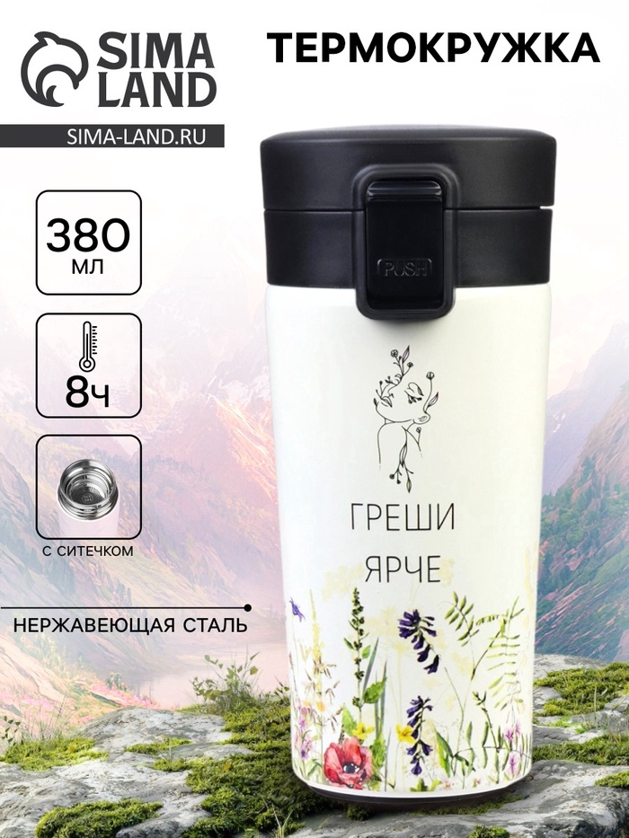 Термокружка «Греши ярче», 380 мл, сохраняет тепло 8 ч, с ситечком