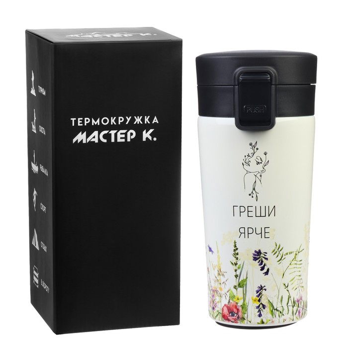 Термокружка является незаменимым атрибутом для всех любителей активного отдыха, её удобно брать с собой в поездку на автомобиле и мини путешествия на природу.