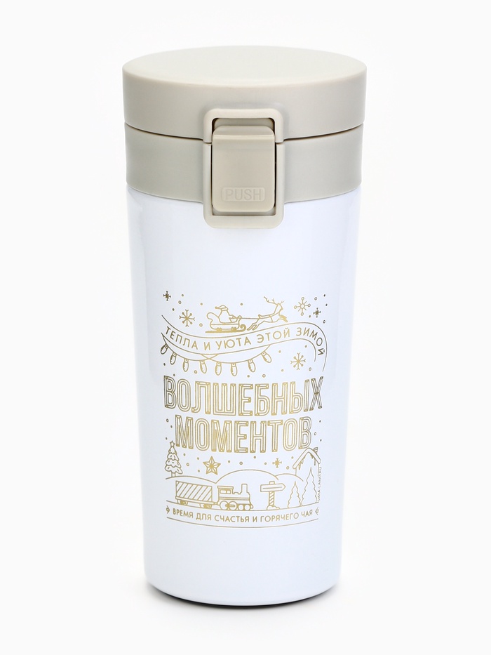 Термокружка новогодняя с кнопкой «Верь в мечту», 350 мл, белый