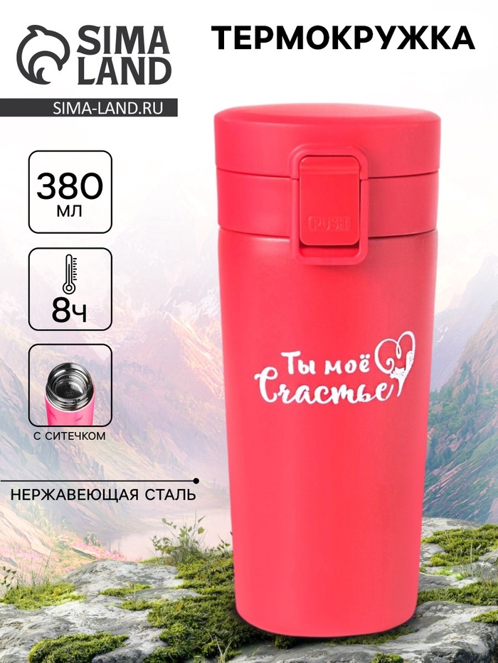 Термокружка «Ты моё счастье», 380 мл, сохраняет тепло 8 ч., с ситечком