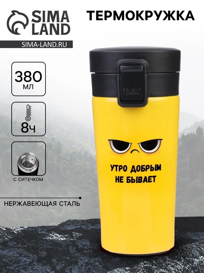 Термокружка «Утро добрым не бывает», 380 мл, сохраняет тепло 8 ч, с ситечком