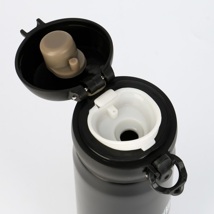 Термос (термокружка) сделан из нержавеющей стали 18/8, сконструирован по вакуумной технологии, с двойной стенкой, следовательно, долго держит тепло и не проливается. Снабжен откидывающейся крышкой, изготовленной из экологичного пищевого пластика, имеется кнопка, позволяющая с легкостью использовать термос одной рукой.
