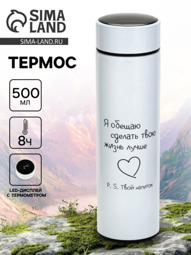 Термос «Сделаю жизнь лучше», 500 мл, с ситечком, с датчиком температуры