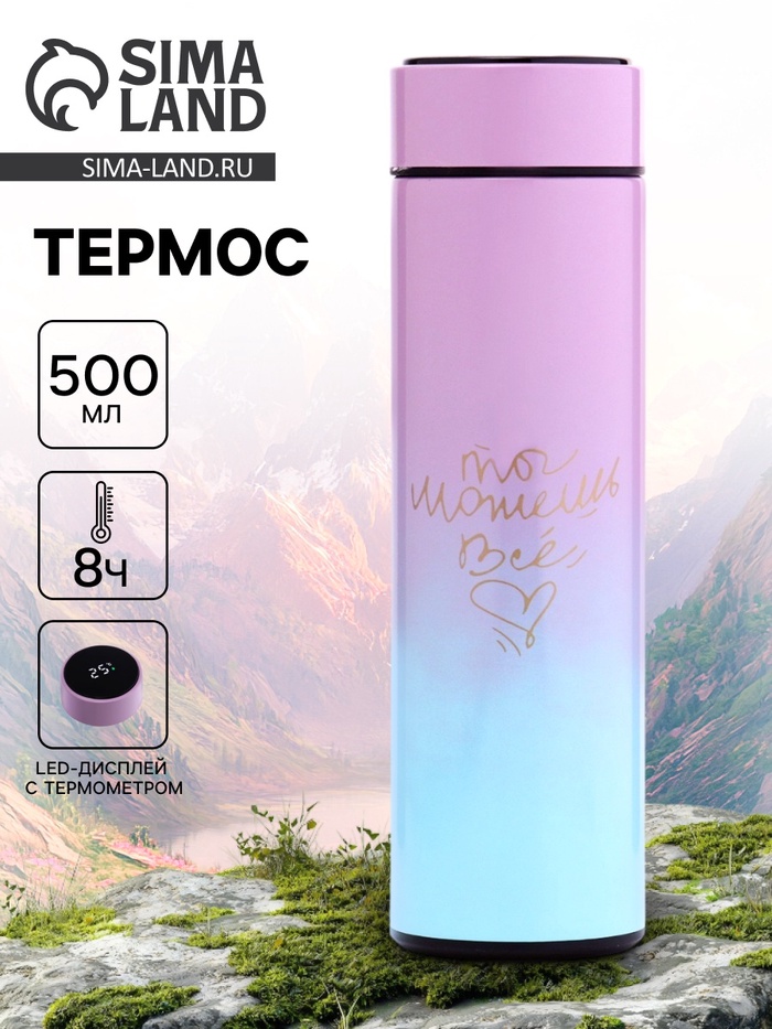 Термос «Ты можешь всё», 500 мл, с ситечком, с датчиком температуры
