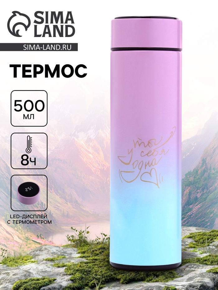 Термос «Ты у себя одна», 500 мл, с ситечком, с датчиком температуры