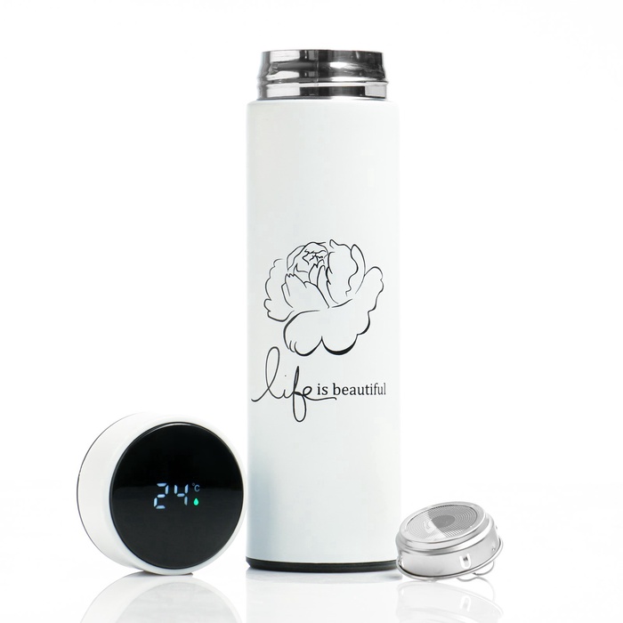 Термос «Жизнь прекрасна», 500 мл, с ситечком, с датчиком температуры