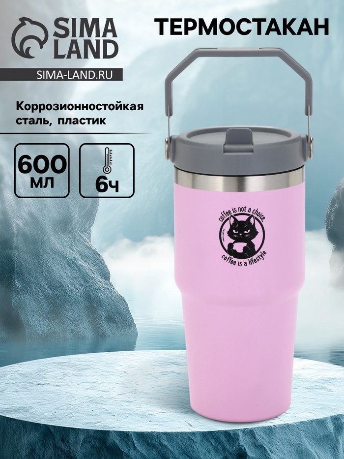 Термостакан с ручкой Coffee, 600 мл, розовый