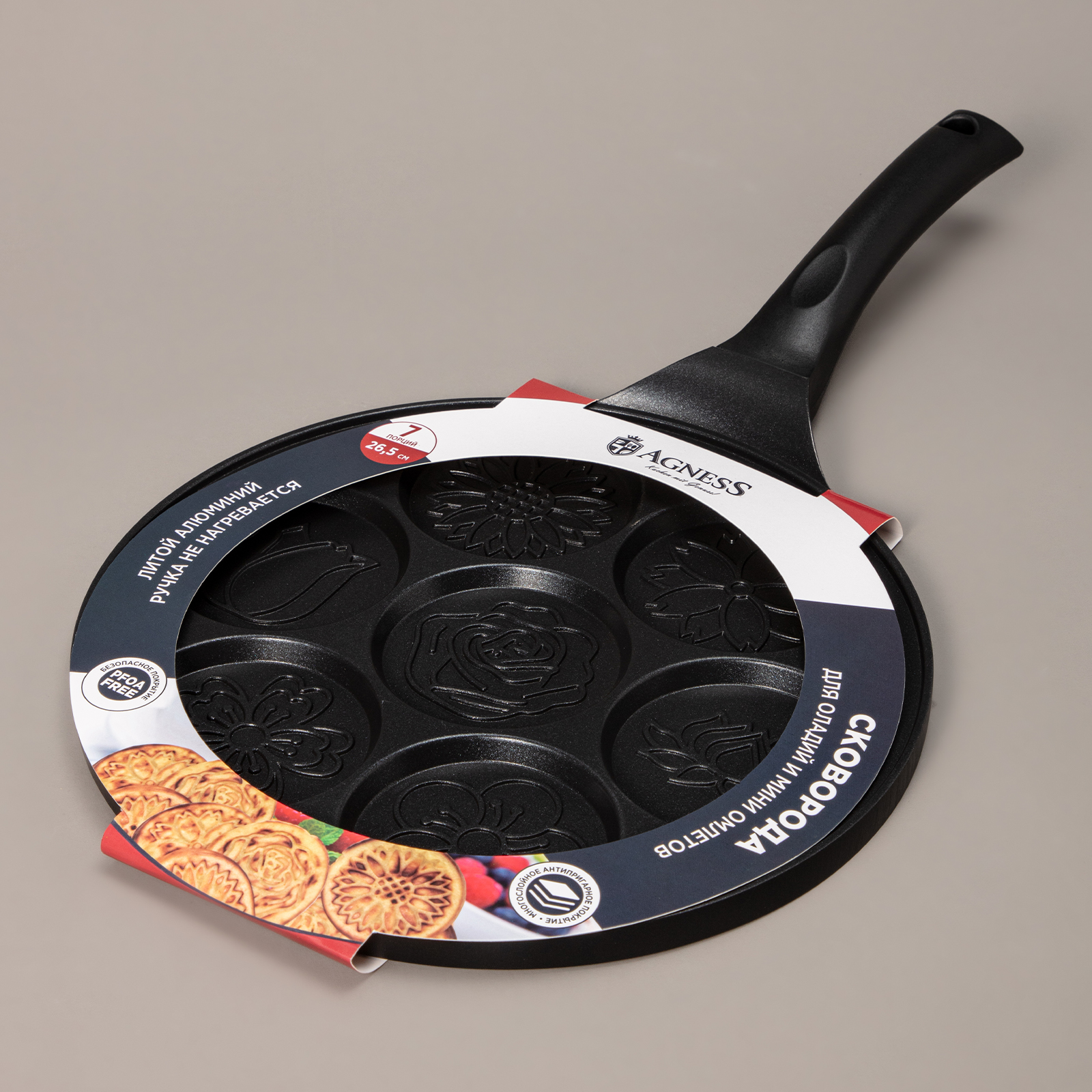 - Сковорода расчитана на 7 порций