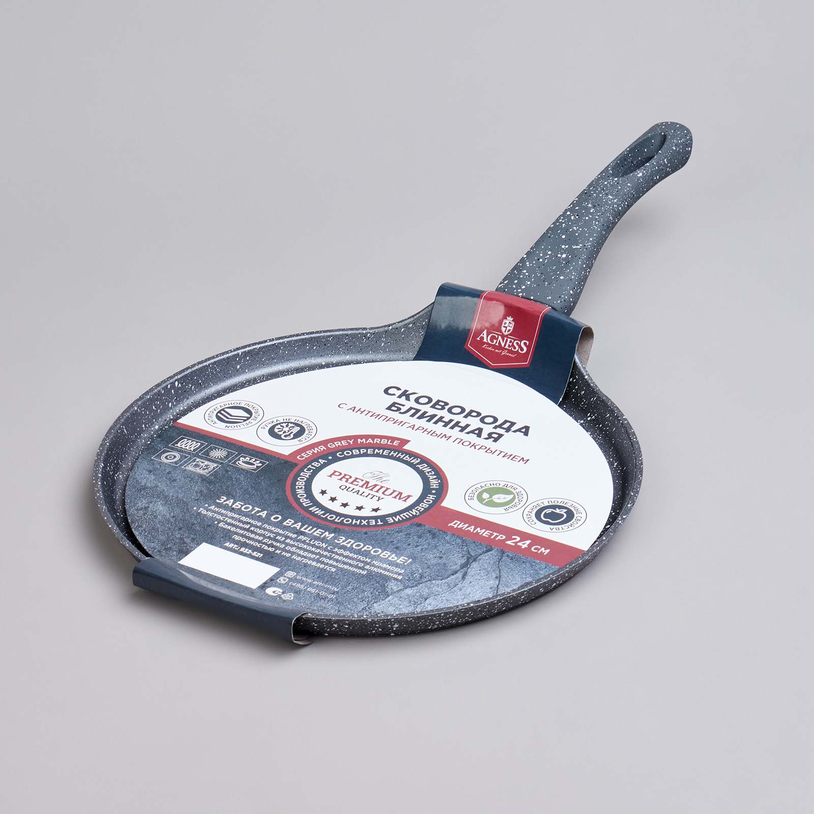 СКОВОРОДА БЛИННАЯ AGNESS С АНТИПРИГАРНЫМ ПОКРЫТИЕМ "GREY MARBLE" - это идеальный выбор для тех, кто ценит удобство и функциональность в посуде.