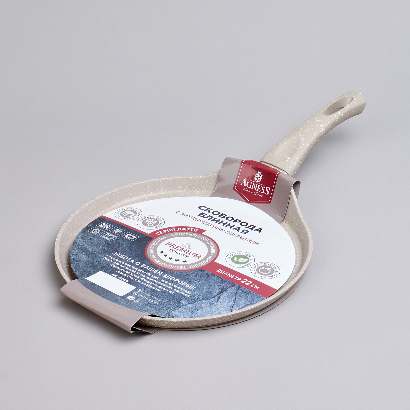 СКОВОРОДА БЛИННАЯ AGNESS С АНТИПРИГАРНЫМ ПОКРЫТИЕМ "LATTE", 22Х2СМ, ИНДУКЦИОННОЕ ДНО