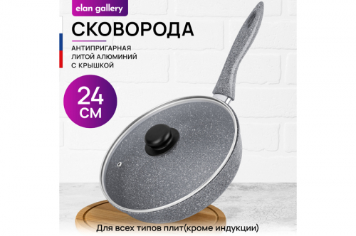 Сковорода глубокая 18 см ГАРМОНИЯ ВКУСА "Серый мрамор" без крышки, н/р, 33,5*19*8,5 см
