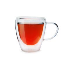 Двустеночная чашка из жаропрочного стекла "Лилия" среднего объема 250 мл с удобной ручкой имеет классическую скругленную форму чаши. Особенности модели: Между двумя стенками стекла есть прослойка воздуха, которая затрудняет теплообмен с окружающей средой. Напиток в такой чашке медленней остывает, а стенки кружки не обжигают руки. В одной упаковке данного артикула по две чашки. Посуда из жаропрочного стекла проста и удобна в использовании, ей не страшны резкие колебания температуры от -20°C до 100°C. Стеклянную посуду удобно мыть, кроме того, она не впитывает запахи и не передает посторонних вкусовых и ароматических нот чаю. Объем: 250 мл Внимание! Двустеночную стеклянную посуду не рекомендуется мыть в посудомоечных машинах. При мойке в посудомоечной машине температура воды не должна превышать 50°С.