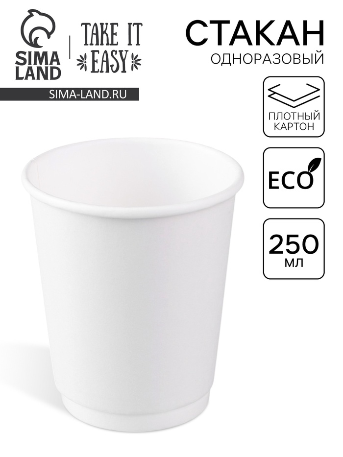 Стакан одноразовый бумажный «Белый», для горячих напитков, двухслойный,250 мл, диаметр 80 мм