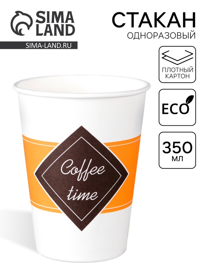 Стакан одноразовый бумажный Coffee time, 350 мл, диаметр 90 мм