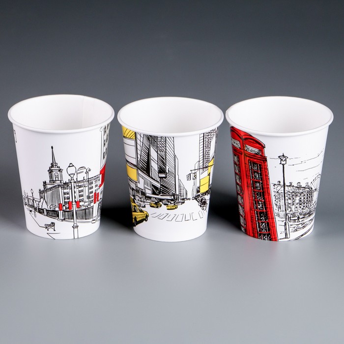 Стакан одноразовый бумажный «Города» для горячих напитков, 250 мл, цветной, диаметр 80 мм МИКС