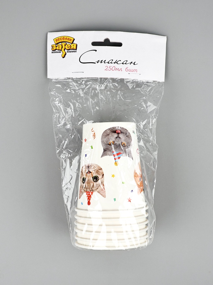 Стакан бумажный одноразовый «Котики», 250 мл 6 шт.