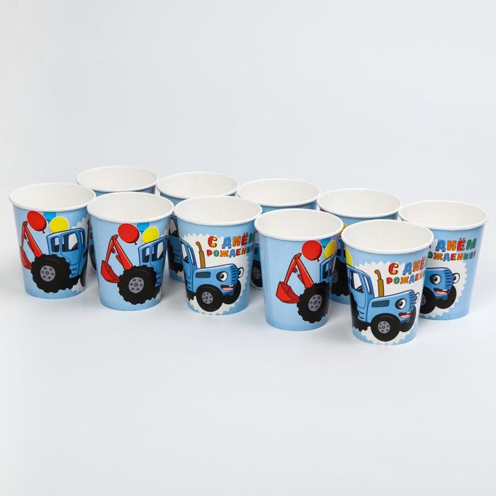 Стакан одноразовый бумажный «С Днем Рождения!», 250 мл, Синий трактор