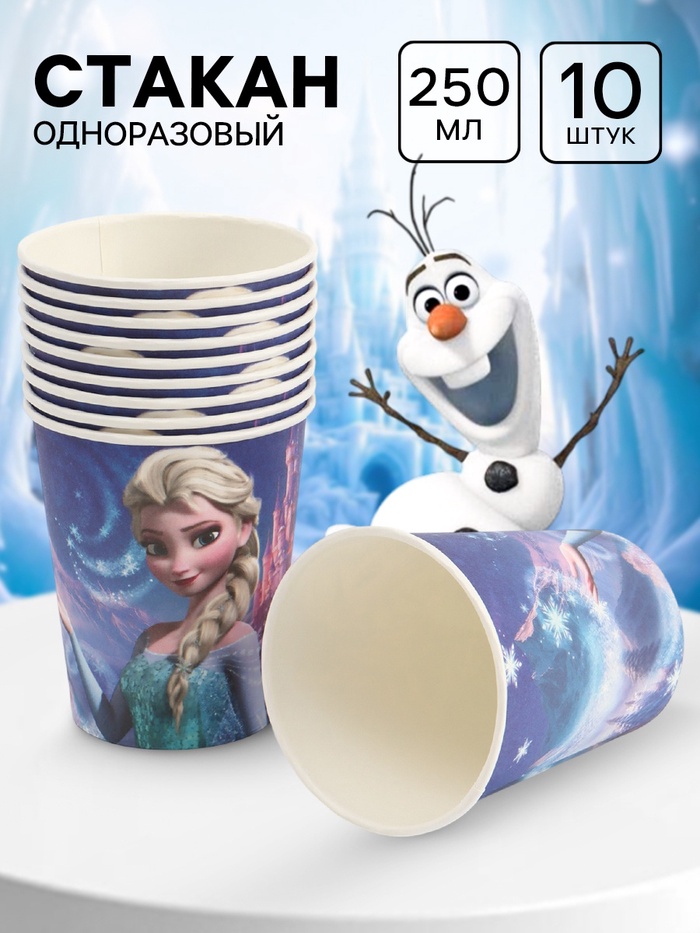 Стакан одноразовый 250 мл, набор 10 шт., Холодное сердце