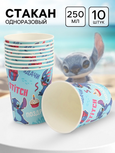 Стакан одноразовый 250 мл, набор 10 шт., Стич