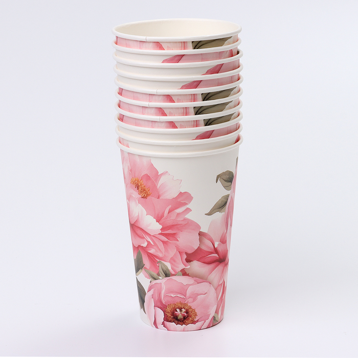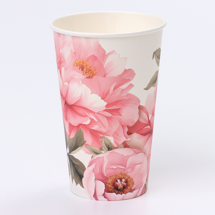 Стакан одноразовый бумажный для кофе «Пионы», 400 мл