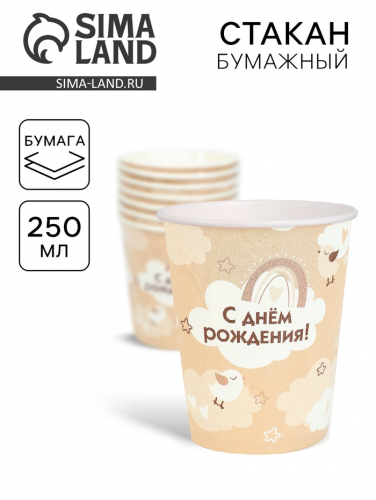 Стакан одноразовый бумажный «С Днём рождения», белый, 250 мл