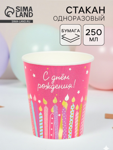 Стакан пластиковый одноразовый «Кристалл», 200 мл, с металлизированными каемками, цвет прозрачный