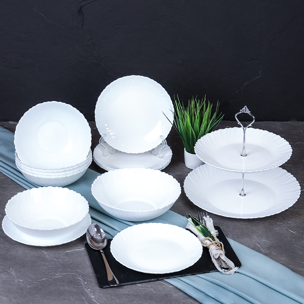 Столовый сервиз из стеклокерамики  по своему составу и технологии производства гораздо ближе к стеклу, чем к фарфору  (это стекло с добавками, которые делают её непрозрачной). Столовый набор на 6 персон и на 12 персон из стеклокерамики визуально похож на фарфор и обладает хорошей устойчивостью к механическим повреждениям. Посуда отлично выглядит при сервировки любого стола и отзывы от покупателей на такие столовые наборы только положительные. Узнать цену и купить столовые сервизы Посуду оптом и в розницу Вы можете в нашем интернет магазине в Челябинске. А также в другиих городах, таких как Оренбург Уфа Курган Омск Тюмень Екатеринбург Самара Пенза Никольск Гусь Хрустальный и других. Доставка во многие города России бесплатная