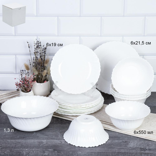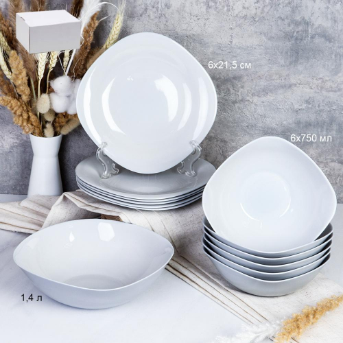 Столовый набор 14 предметов Классика с вазой для фруктов / 13/7578 (WHITE) /уп 2/