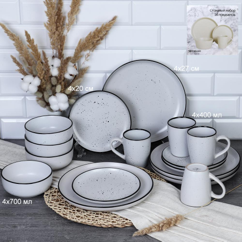 Столовый набор 16 предметов / 16/1700 /уп 2/ Ручная работа Точки АКЦИЯ