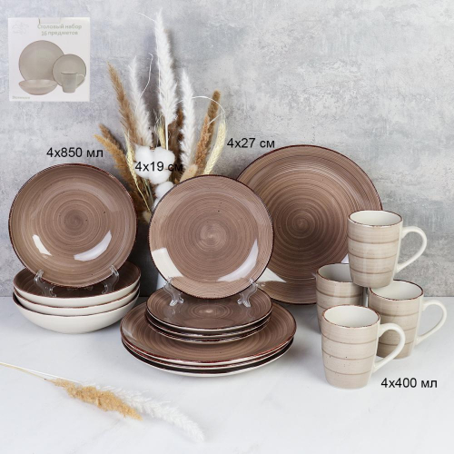 Столовый набор 16 предметов Крапинка бежевый / WHP24-0120G /уп 2/ АКЦИЯ
