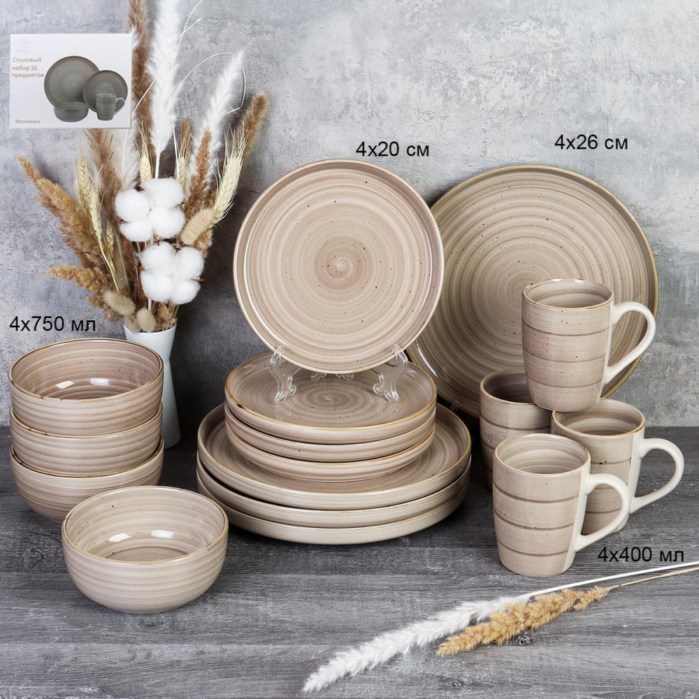 Столовый набор 16 предметов Крапинка бежевый / WHP24-0155G /уп 2/ АКЦИЯ
