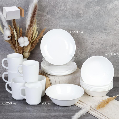 Столовый набор 19 предметов Бело-Серый цвет Дэй Смол GR-19 FLYGP857565 (уп 2)
