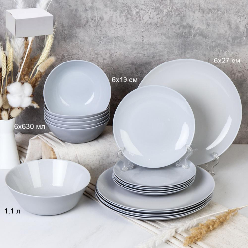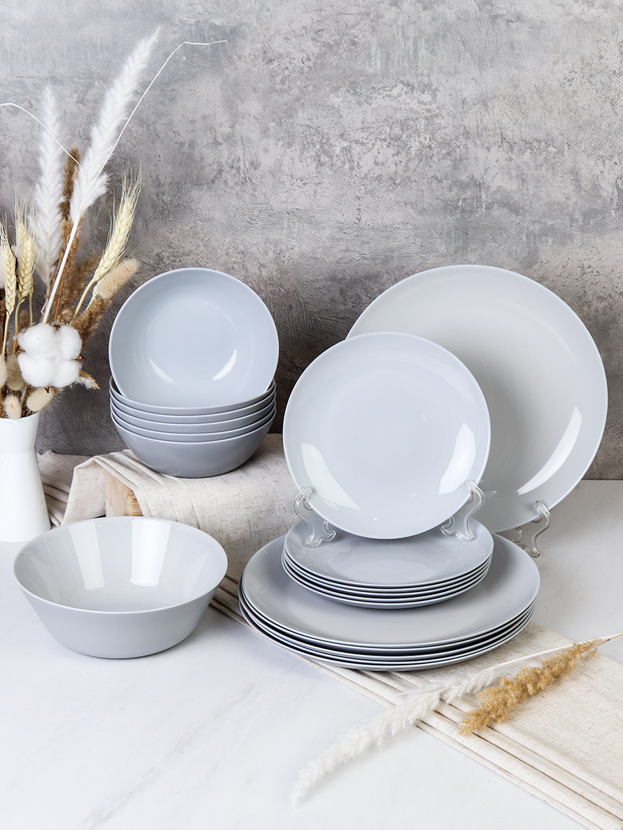 Столовый набор 19 предметов Серый цвет Дэй Биг GR-19 FLYGP1057565 (уп 2) Два оттенка серого