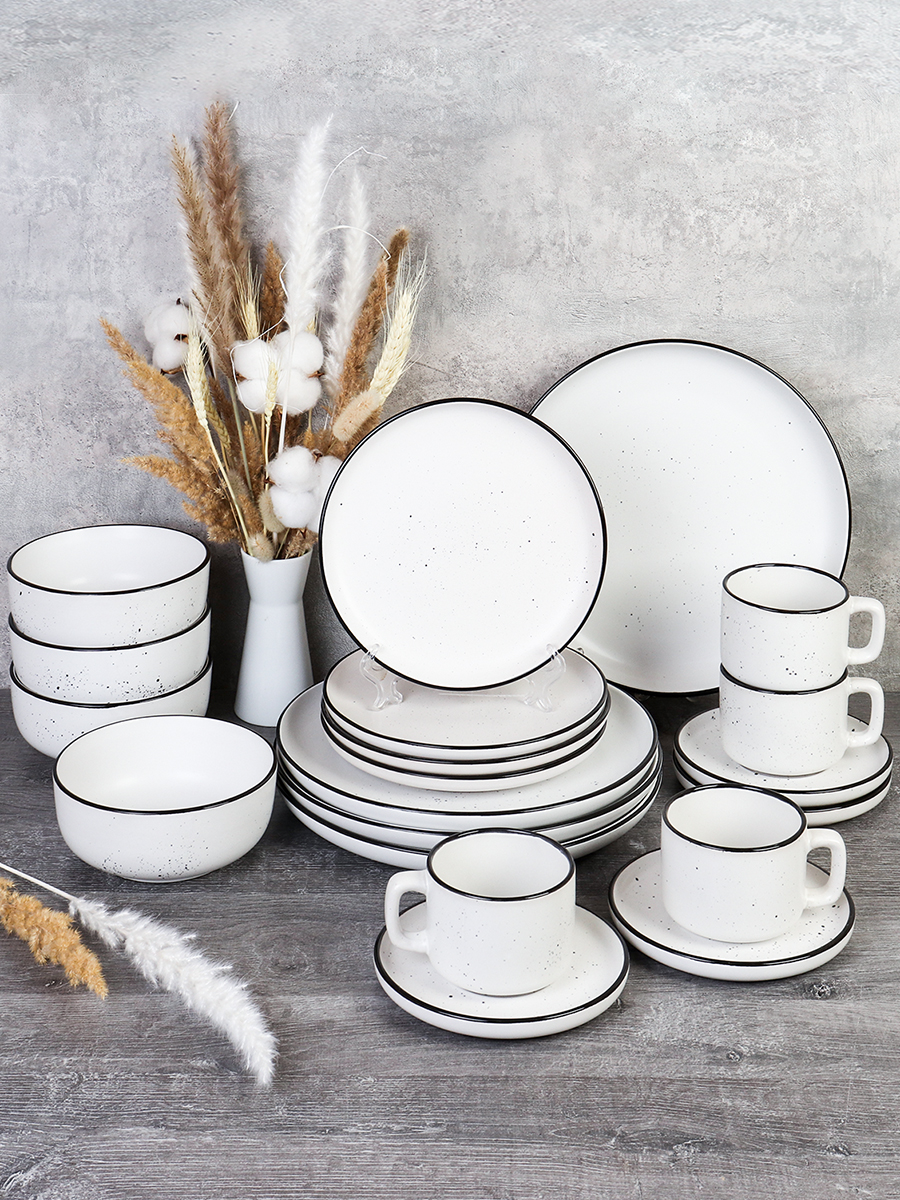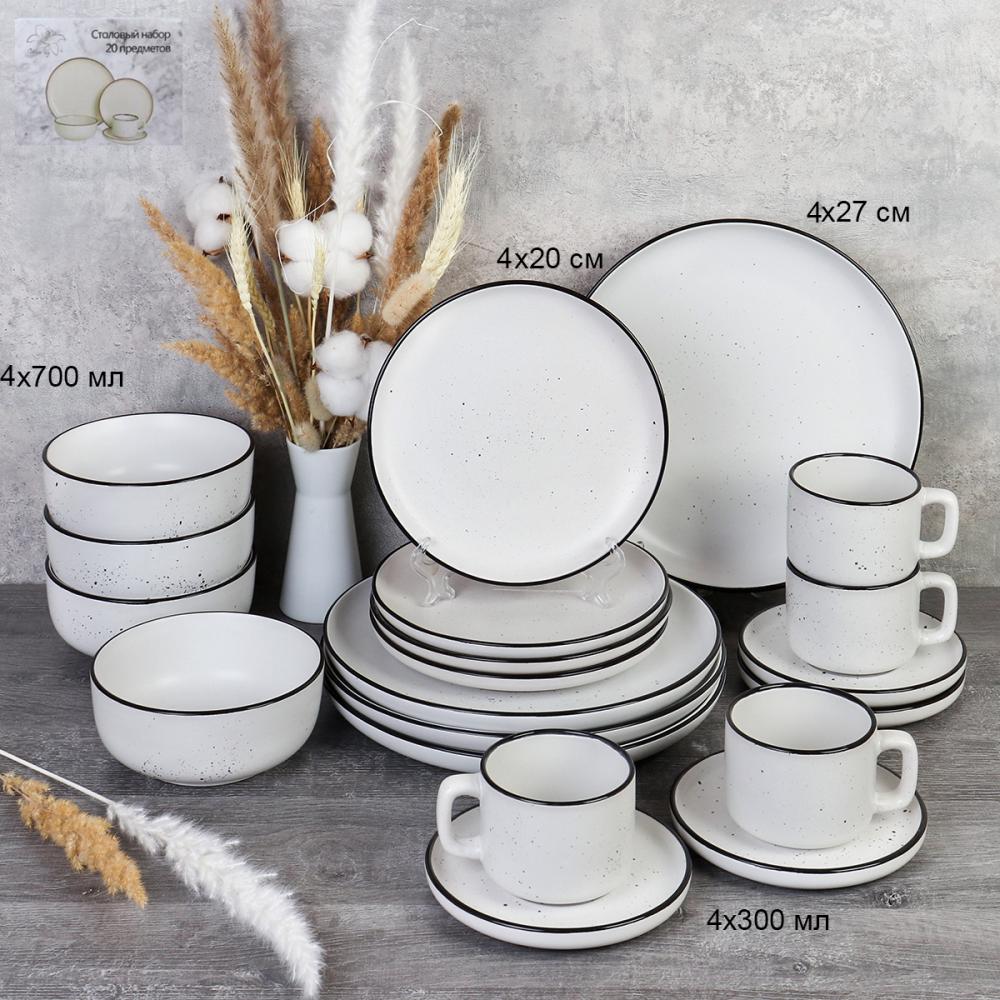 Столовый набор 20 предметов / 20/1700 /уп 2/ Ручная работа Точки белый (оттенок серого) АКЦИЯ
