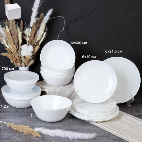Столовый набор 20 предметов Классика с блюдом GRAY-20 LHP-8120 (WHITE) (уп 2)