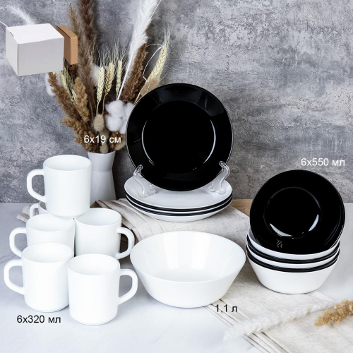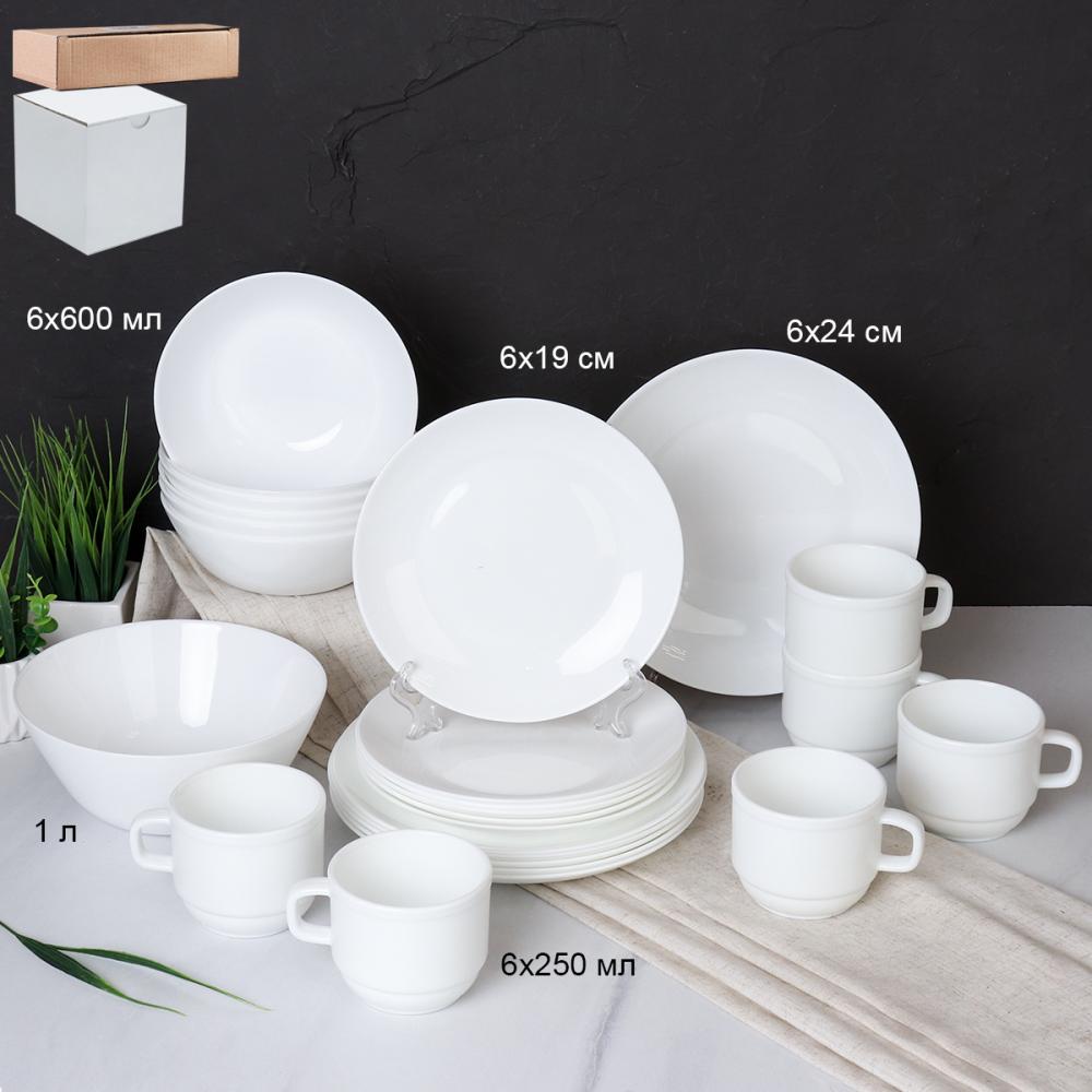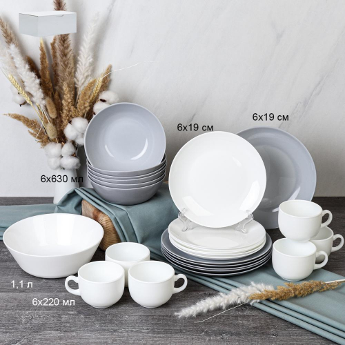 Столовый набор 25 предметов Дэй белый с кружками Офис 19 FLYGP8575672 (WHITE)